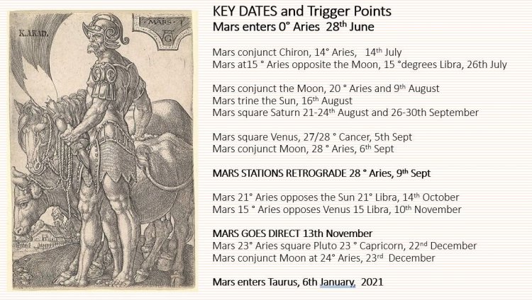 At the highest level Mars represents an equivalent to Freud’s concept of Eros, which can be the sex drive for sure, but it is not only that. It is the deep need we have to lay down what Reich called our ‘armour’ – the sum total of all the repressed Mars in the somatic intelligence – and finally be fully in the body, to have it healed and feel ‘chi’ energy flow freely and where we love life to the nth degree. Mars/Eros helps channel the will to live as opposed to the death wish. He is the one who will pull back before we jump off the bridge to end it all. He is the survival instinct that works contrary to death or giving in to oppression. He will fight to stay alive and we need that especially now if we feel under physical attack and whether that comes from imagined health threats we are told make us vulnerable, or from big technology company shenanigans or where we feel public life is not voluntary, or from psychic attackers with their witches brew of toxic ideas. A strong Mars can help you charge up the batteries of your immune system.