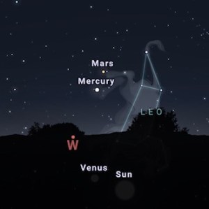 But Venus disappeared around August 6th popping just below the horizon, so she is now no longer visible in the evening sky- a phenomena noted by ancient astronomers. She will reappear as the Morning Star, Phosphorus, on August 21st just before the Sun moves into Virgo. The conjunction this is known as an Inferior conjunction which happens while Venus is retrograde. The Superior conjunction is when she is in forward motion and conjunct the Sun. She still has to go back to 12° of Leo before moving forward again.