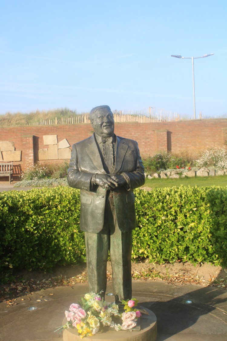 Last Sunday, I visited the memorial statue of comedian Les Dawson who was born 2nd February, 1931. Les Dawson spent the last years of his life living in Lytham St Anne’s, Lancashire, hence the statue. He died in Manchester on June 1993. Dawson really needs no introduction as a legend of comedy, but he stands out for his inimitable style which is, particular to Lancashire: earthy, slightly dour, based on complaining about everything, which is not sarcasm but simple, direct appreciation of hardships while still having a good laugh.
