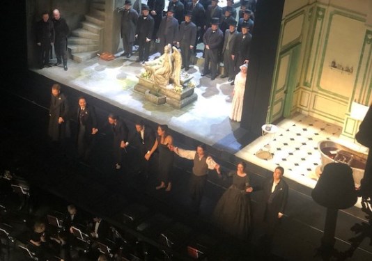 This split-screen version first debuted in 2016 and has been revived in 2024. But it has polarised audiences with some disapproving reviews. Some may applaud the doll’s house presenation as innovative focussing more on the women in the story, but it takes away attention from the singers at key moments which is frustrating. The feeling is that people do not wish such liberties to be taken or the back stories to be fleshed out in such a distracting manner. The original libretto might be allowed to speak for itself. It’s a question of editing- some bits of the story were left out for good reason. The Von Karajan Lucia in 1955 worked because the stage directions had just one spotlight on Callas during the mad scene allowing her to ‘become’ the music.