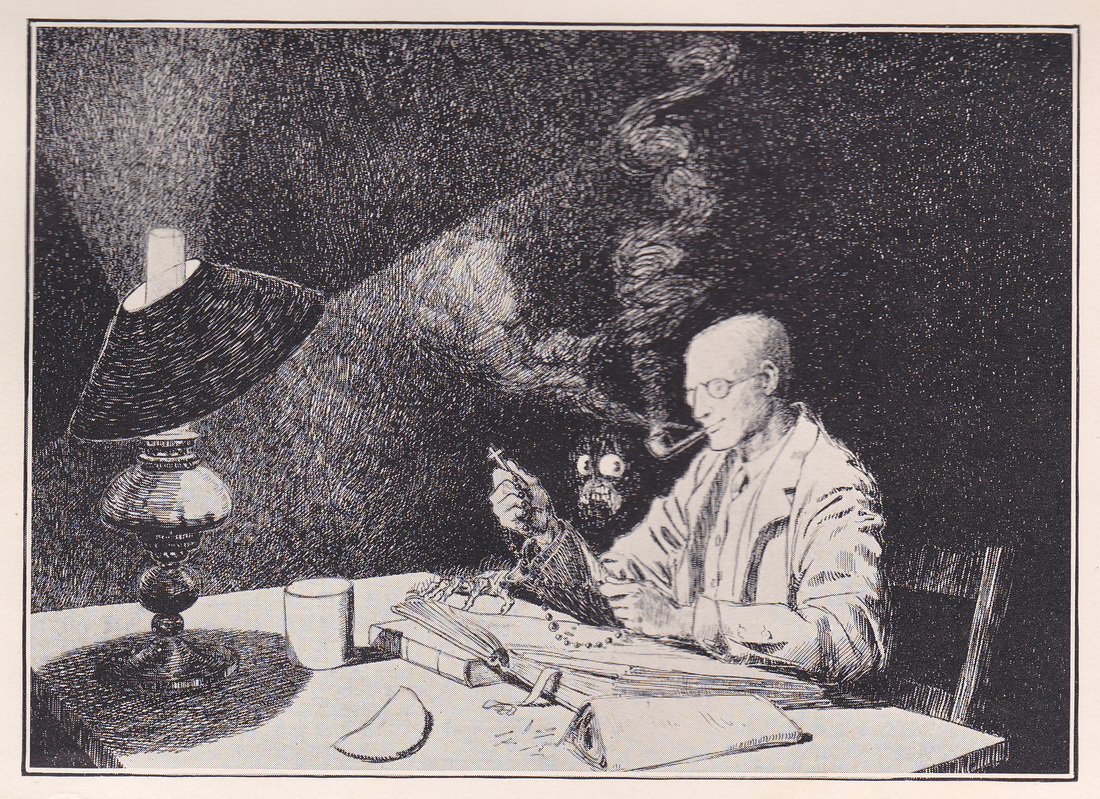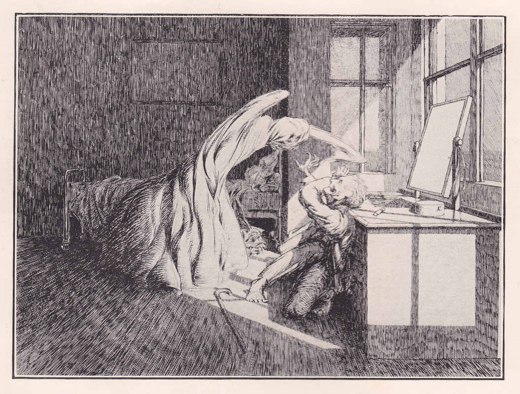 Artist and illustrator James McBryde was one such friend. He was handsome and ten years younger than M.R. James and and they even went on holiday together- three years in a row. But in June 1904 McBryde died aged 30 after appendicitis surgery and M.R. James was griefstricken. But also la decade later the loss of thousands of young men to their death in the trenches of WWI increased his sense of isolation. His diary for 1914, the year WWI began, is completely blank. It was McBryde who encouraged M.R.James to publish and he provided the illustrations. M.R. James became welcome godfather to McBryde’s young daughter.